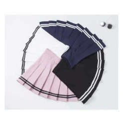 High Waist Korean Pleated Skirt – Patchwork Striped Tennis Skirt For Women