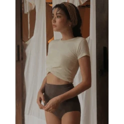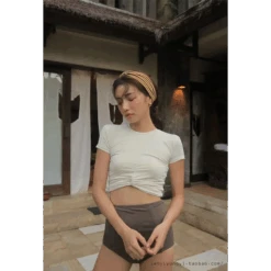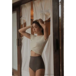 This stylish bikini set blends Korean fashion influence with practical elegance—featuring a ruched, short-sleeve top and flattering high-waisted bottoms for a modest yet modern vibe. Whether you’re soaking up sunshine or relaxing in hot springs, you’ll turn heads with effortless grace.