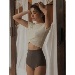 - High-waisted bottoms for a flattering silhouette