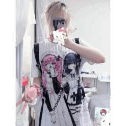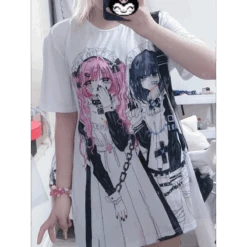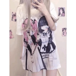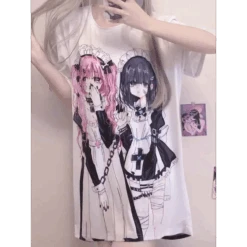 Fall in love with the Breezy Loose Cartoon Print Shirt—a statement piece with a soft pastel aesthetic and two adorably moody anime maids front and center. It’s the ultimate wearable art for cozy days, anime conventions, or just leveling up your aesthetic Insta feed.