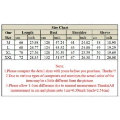 - XXL: Length: 73cm, Bust: 134cm, Shoulder: 65cm, Sleeve: 60cm