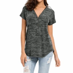 Every day, the number of these products in stock changes because of both buyers’ and manufacturers’ activity. There is nothing to worry about, though: if there is no “Out of Stock” sign on this product page, then the Women Short Sleeve Zipper Spring T Shirts can be purchased safely.