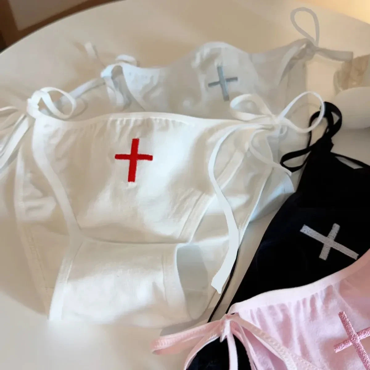 Add a touch of cosplay-inspired charm to your wardrobe with the Cosplay Nurse Lace-Up Cross Printed Panties. These low-waist G-strings blend sweet Lolita-style aesthetics with a breathable and soft cotton-spandex fabric. Perfect for everyday wear or playful occasions, these panties are designed to be as comfortable as they are stylish.