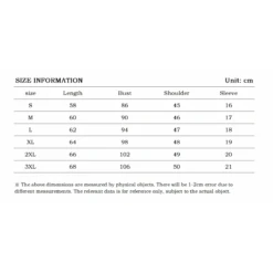 | Size | Length (cm) | Bust (cm) | Shoulder (cm) | Sleeve (cm) |