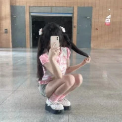 Pair this tee with pastel shorts, a flowy skirt, or your favorite high-waisted jeans. Complete the look with chunky sneakers and a cute crossbody bag for ultimate kawaii flair!