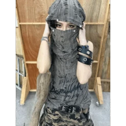 Pair the Distressed Hoodie Tank Top – Y2K Grunge Pearl Detail Tee with ripped cargos, fishnet sleeves, and platform sneakers for a look that slays from sunrise to underground rave. Bonus: add bold eyeliner and a mini backpack for full e-girl intensity.