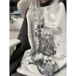 🌸 Introducing the Dreamy Detachable Sleeve Tee – Kawaii Cat & Anime Harajuku Style Top 🌸