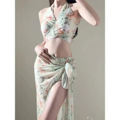 This gorgeous Floral Halter Bikini Set brings together dreamy florals, flirty ruffles, and a breezy mesh wrap skirt for a look that’s equal parts sweet and stunning. It’s your perfect go-to for seaside photos or sipping mocktails under the sun!