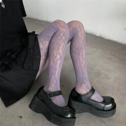 Pair these floral mesh pantyhose with a mini skirt, oversized graphic tee, and chunky platform boots for a classic Harajuku look. For a more elegant vibe, layer them under a flowy dress and pair with strappy heels for a chic, evening style.