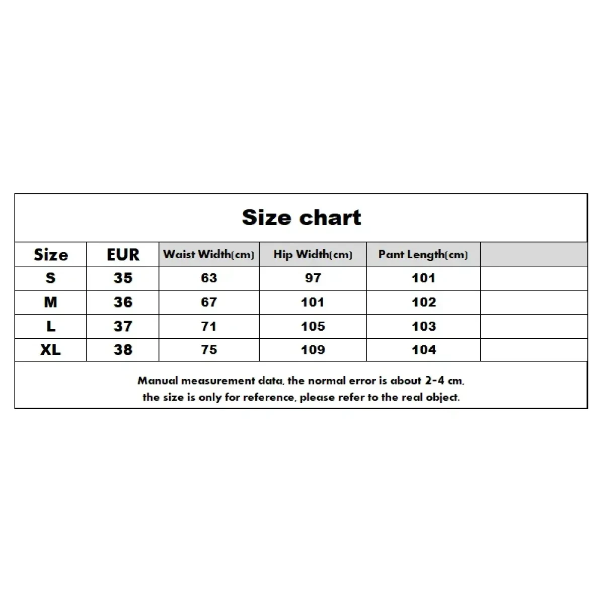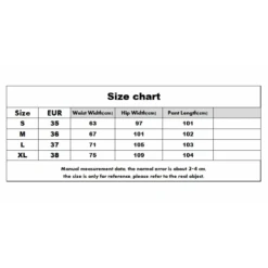 | Size | EUR | Waist Width (cm) | Hip Width (cm) | Pant Length (cm) |