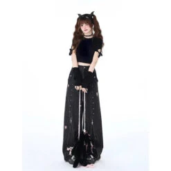 Pair these wide-leg denim pants with a tucked-in lightweight blouse and wedge sandals for a chic daytime look. For a vintage vibe, style them with a cropped top, chunky heels, and bold accessories. Add a wide-brimmed hat for sunny outdoor activities.