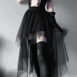 Pair it with a lace corset top and over-the-knee stockings for a romantic angst-core look, or layer with a fishnet tee and platform boots for a moody streetwear slay.