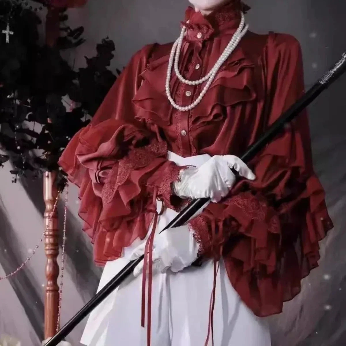 Step into a dreamy, elegant world with this Lolita-inspired lace blouse! Featuring romantic lantern sleeves, delicate lace accents, and a classic stand collar, this blouse is perfect for spring and summer styling. Whether you’re embracing Harajuku aesthetics, vintage elegance, or soft Lolita fashion, this breathtakingly beautiful piece is a wardrobe essential!