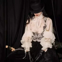 Lolita Princess – Pair with a ruffled skirt, lace-up boots, and pearl accessories for a dreamy Lolita look.