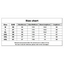 | Size | Length(cm) | Chest(cm) | Shoulder (in) | Sleeve (in) |