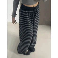 Slip into these wide leg wonders and feel the freedom of movement, the softness of knit, and the boldness of stripes. Whether you’re chilling indoors or wandering city streets, these striped pants are your go-to for comfort with attitude—only at Kawaii Stop.