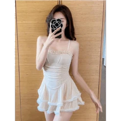 This Halter Lace Swimsuit Dress is your go-to for sweet summer vibes. Shop now and make a splash with Kawaii Stop!