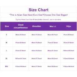| Size | Bust (cm/in) | Shoulder (cm/in) | Waist (cm/in) | Hips (cm/in) |