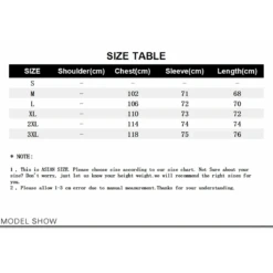 | Size | Chest (cm) | Sleeve (cm) | Length (cm) |