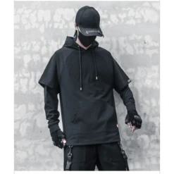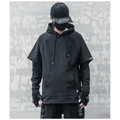 This layered hoodie blends cutting-edge Harajuku fashion with sleek techwear aesthetics, delivering a bold, tactical look that stands out in any crowd.