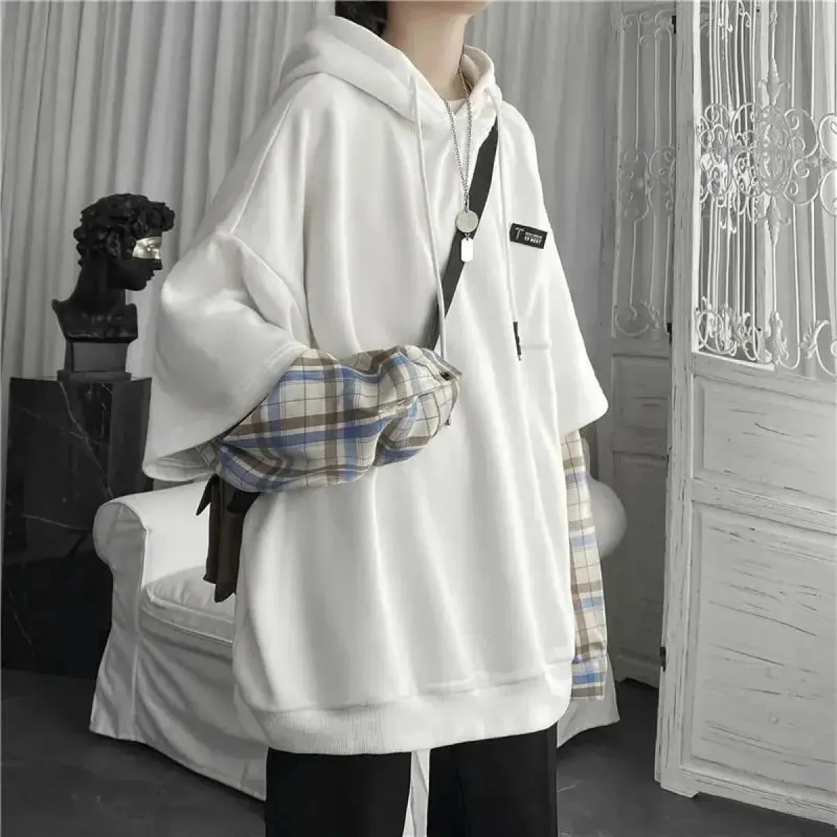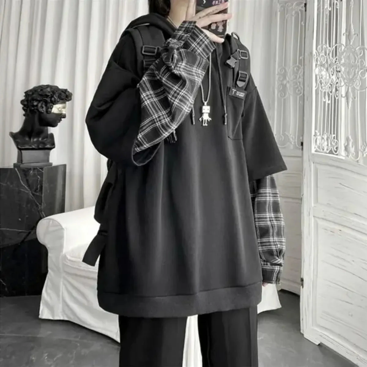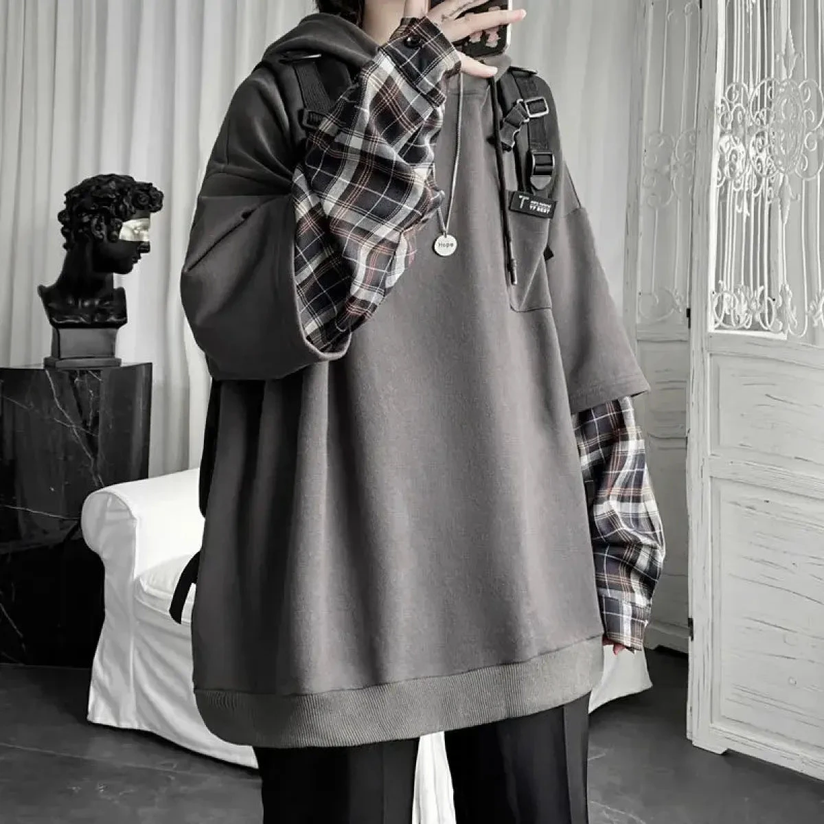 Upgrade your streetwear game with this oversized plaid patchwork hoodie! Perfect for lovers of Harajuku grunge, this hoodie combines edgy style with cozy comfort, making it your new favorite piece for any season. 🌟