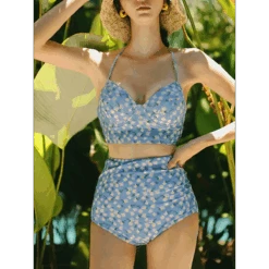 This charming High Waist Bikini Set blends timeless vintage aesthetics with modern comfort. Featuring a flattering high-waisted bottom and a floral print top with adjustable straps, it’s the perfect choice for making a splash in style.