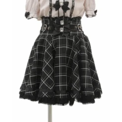 Channel your inner fairycore dream with this ultra-cute plaid mini skirt. Designed with a delicate lace trim and a flattering A-line silhouette, this skirt is the perfect blend of soft-girl charm and Y2K aesthetics. Whether you’re pairing it with a pastel crop top or layering it for a gothic-inspired look, this piece is a must-have for any J-fashion lover.