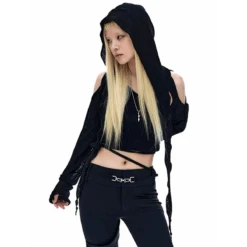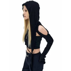 Elevate your edgy style with the Hooded Long Sleeve Crop Top! Perfect for adding a sleek, gothic vibe to any outfit, this top features a cropped length and a cozy hood that pairs effortlessly with any streetwear look. Made from a breathable blend of polyester and spandex, it’s ideal for summer layering or as a standalone statement piece. Whether you’re into gothic fashion or techwear aesthetics, this versatile top is a must-have for your wardrobe!