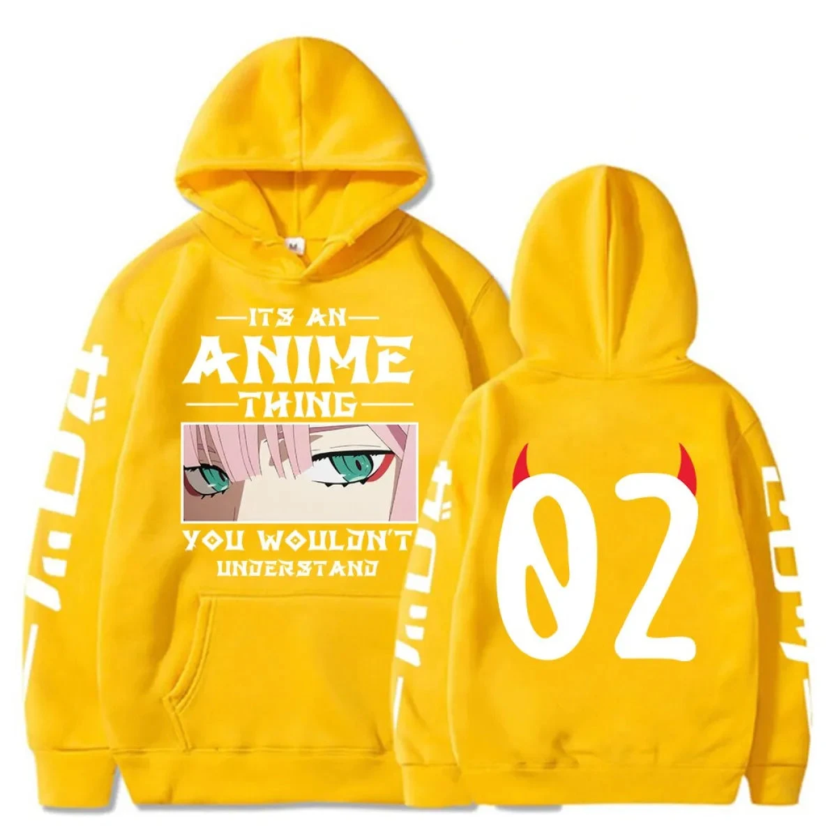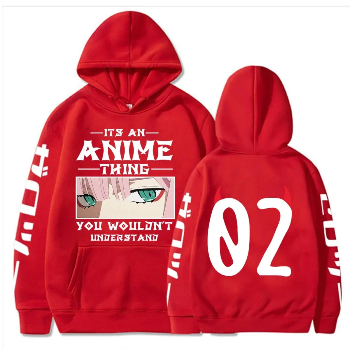 The number of items available for purchase declines daily. However, if you place your order today, you won’t see a shortage in the Anime Darling In The Franxx Hoodie – A Must-Have for Fans supply. We do have multiple warehouses strategically placed for quick shipping times. We will use all warehouses for your order if needed.