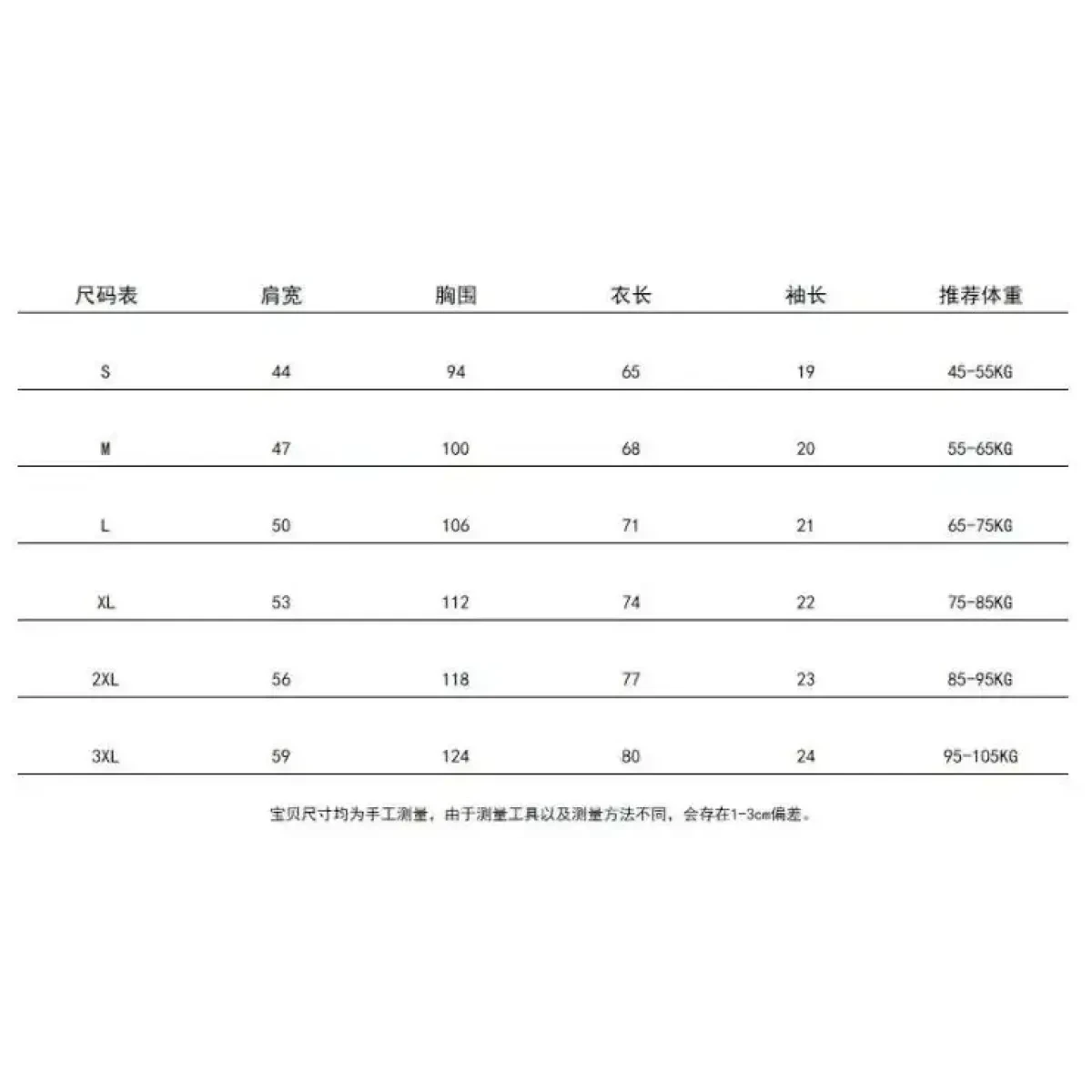 - S: Bust: 94cm, Length: 64cm, Shoulder: 47cm, Sleeve: 17cm