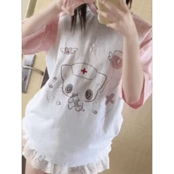 Embrace the vibrant world of Harajuku fashion with this Kawaii Cartoon Patchwork T-Shirt, a perfect fusion of casual streetwear and Y2K aesthetics. Designed with a charming cartoon patchwork pattern, this top blends comfort and creativity, making it an ideal pick for summer days. Crafted from a soft and breathable mix of cotton, polyester, and modal, it offers slight stretch and a loose fit for ultimate ease.