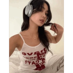 Embrace your love for feline friends with our adorable Kawaii Tank Top featuring the whimsical phrase “Have You Seen My Cat.” This Y2K-inspired top is a must-have for cat lovers, adding a touch of charm and playfulness to your wardrobe.