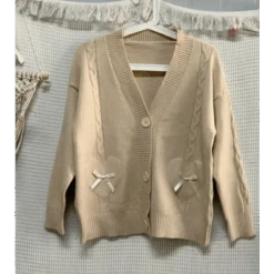 This cardigan is the perfect balance of cozy and chic, making it an essential layering piece for any season. The bow decoration adds a hint of playfulness and romance, elevating your everyday casual look.
