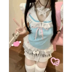 👚 Styling Tip: Pair the Kawaii Lace Patchwork T-Shirt with high-waisted denim shorts and espadrille sandals for a cute and casual summer look. Add a straw hat and woven bag for a touch of beachy charm, perfect for picnics in the park or seaside strolls. Whether you’re out and about or lounging at home, this tee will keep you looking stylish and feeling fabulous all season long! 🌊