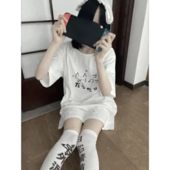 🛒 Add a touch of whimsy to your wardrobe with our Kawaii “Lazy Cat” T-Shirt. Perfect for expressing your love for cats and embracing a playful aesthetic.