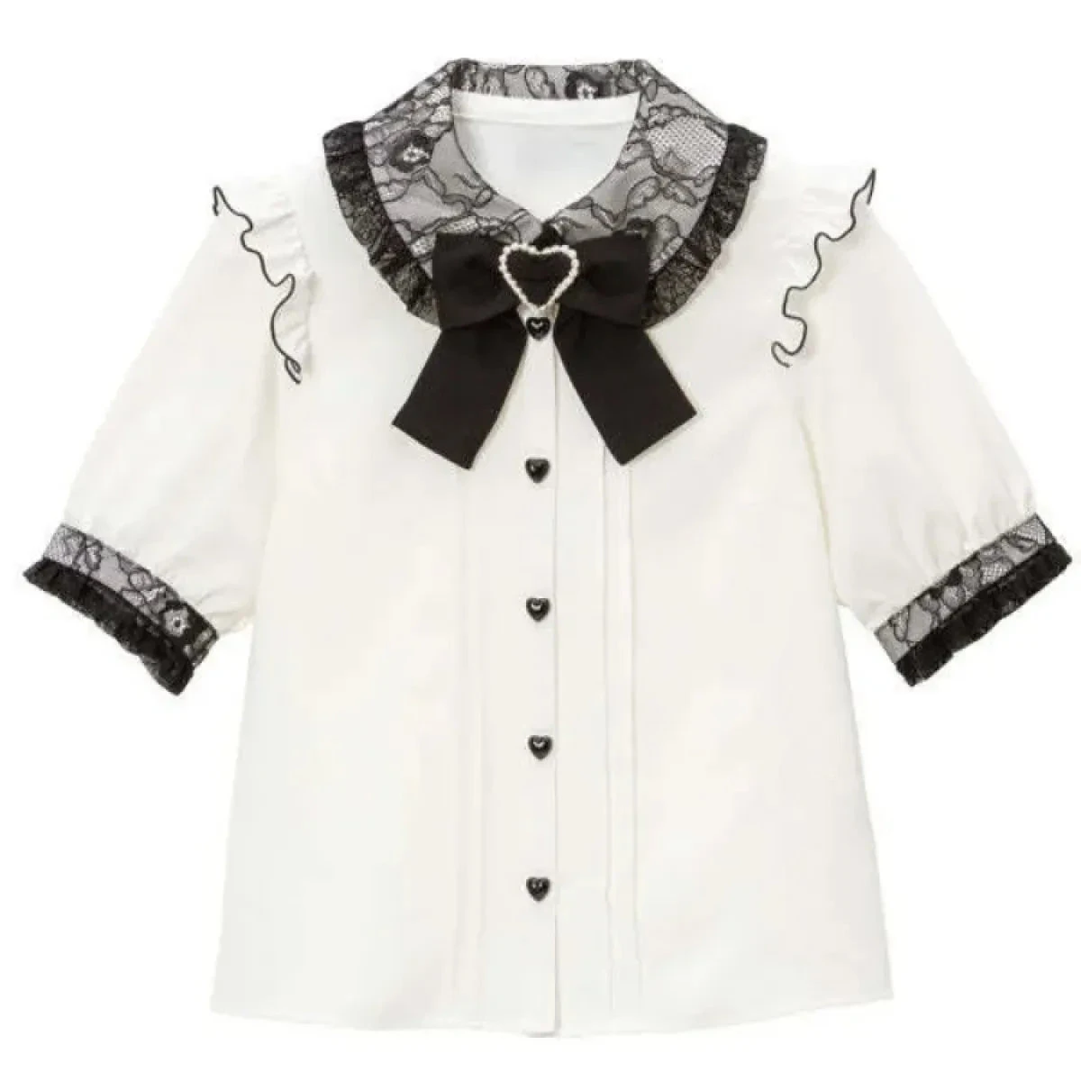 Step into a dreamy world with our Kawaii Lolita Lace Blouse, a delightful fusion of Y2K grunge and coquette fashion! This enchanting top features charming heart summarys and a playful bow detail that captures the essence of kawaii style. Perfect for those who adore a touch of vintage flair with a modern twist.
