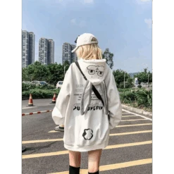 👗 Styling Tip: Pair this oversized hoodie with your favorite leggings or skinny jeans for a cozy yet chic ensemble. Complete the look with chunky sneakers and a crossbody bag for an effortless streetwear vibe. Don’t forget to accessorize with cute hair clips or a beanie to complement the adorable rabbit ears!
