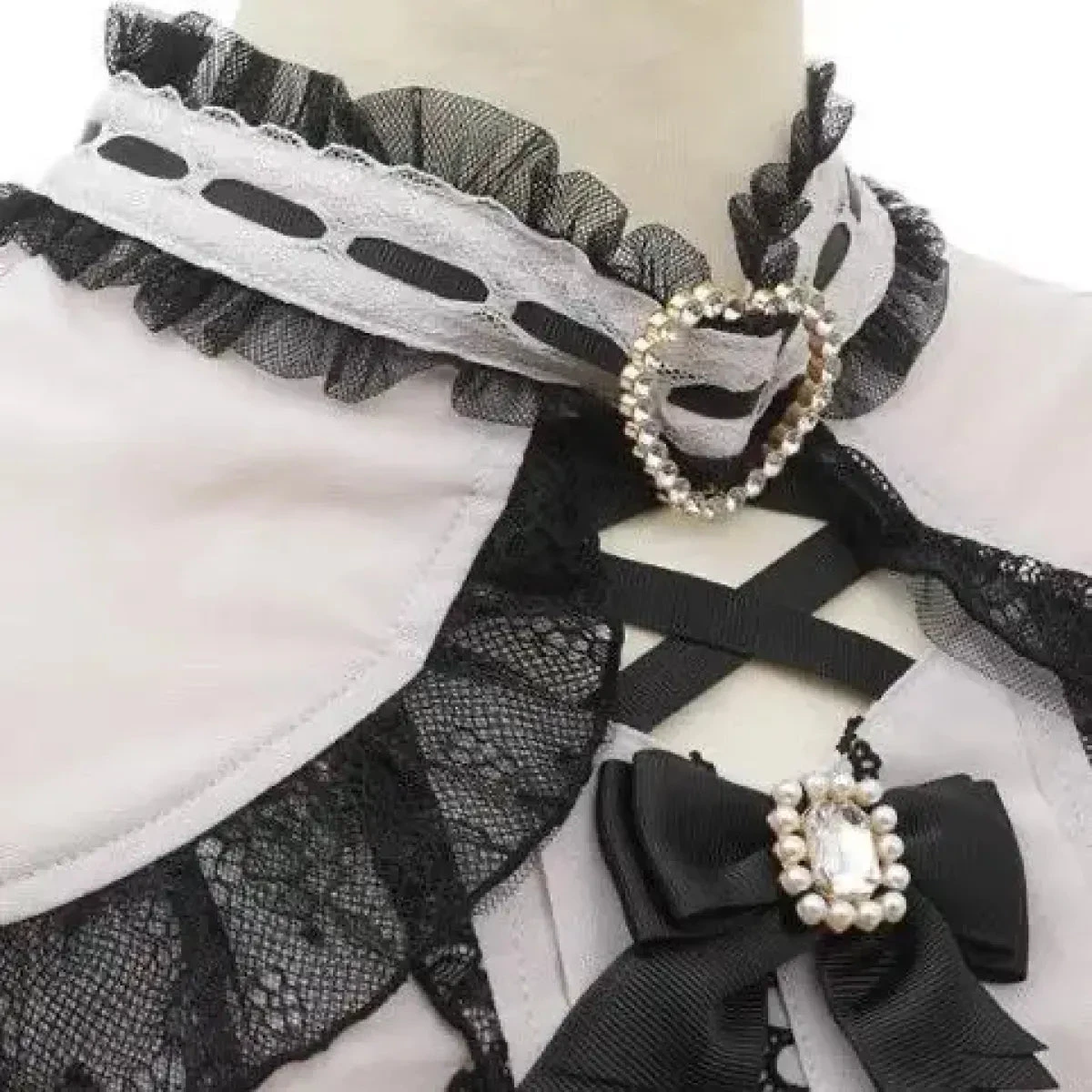 Pair it with a high-waisted plaid skirt, lace tights, and Mary Janes for a classic Gothic Lolita look, or tuck into a pastel skirt with frilly socks for a sweeter vibe. Add a lace choker for an extra elegant flair!