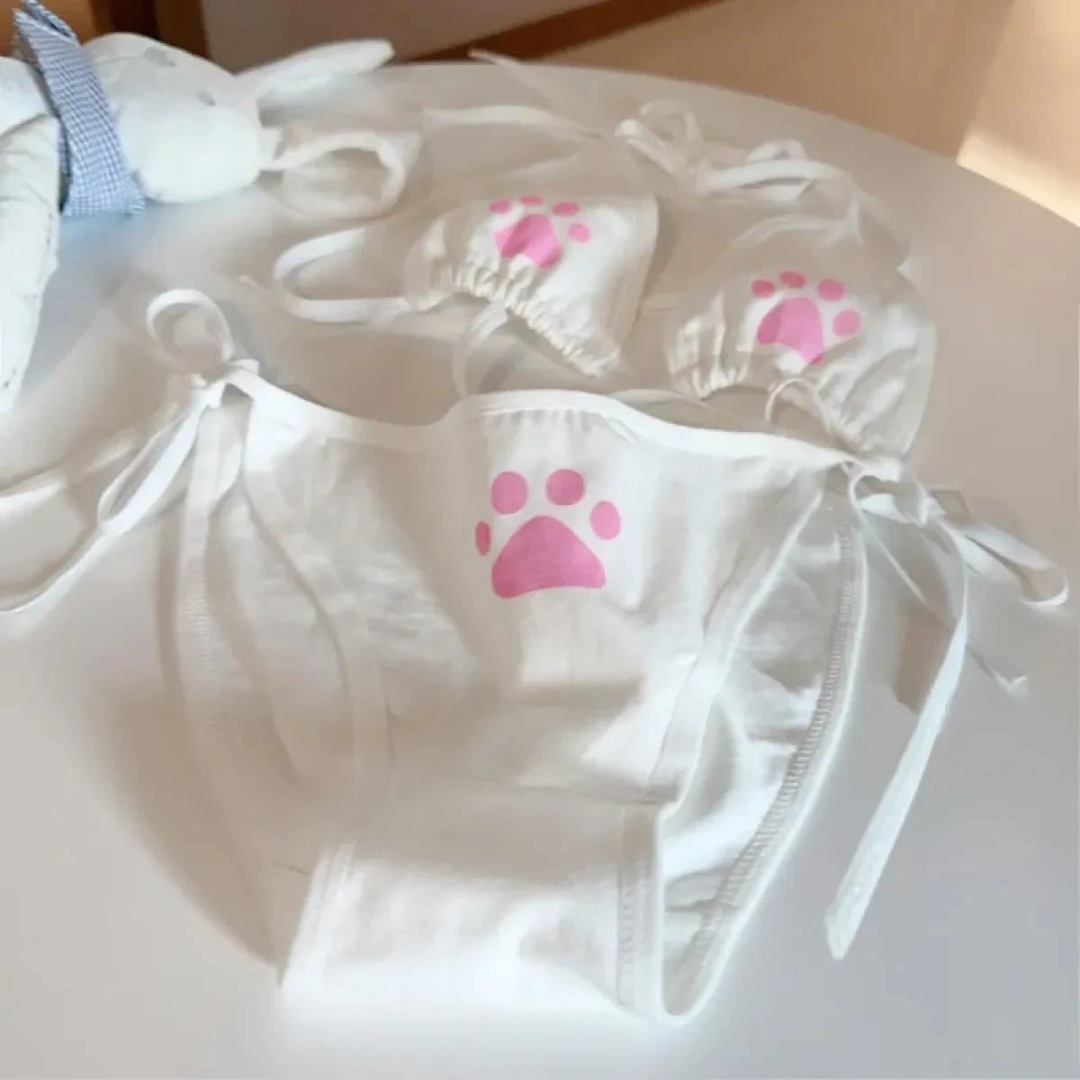 Pair this adorable bra and brief set with a lace-trimmed Lolita dress or pastel loungewear for a cohesive kawaii aesthetic. Add thigh-high stockings and a ribbon choker for a cosplay-ready look.