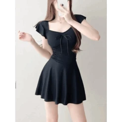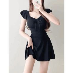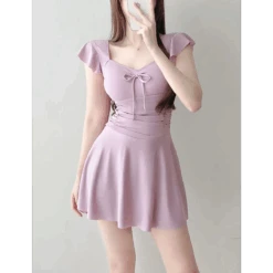 Ready to serve cottagecore realness at the pool? The Mauve Ruffle Sleeve One Piece Swimsuit – Bow Detail Mini Dress Style is here to steal hearts. With fluttery ruffle sleeves, a soft bow accent, and a delicate mini-dress silhouette, this one-piece is the perfect mix of playful and polished. Whether you’re lounging in a garden or floating through beachside daydreams, this Japan-style swimsuit brings pure pastel magic.