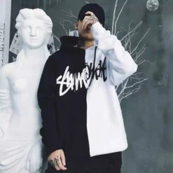 Learn more about the Black White Splice Hoodies Oversize Hip with our specifications below.