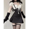 Pair this crop top with high-waisted leather pants or a flowy maxi skirt for a dramatic gothic look. Add chunky boots and layered silver jewelry to complete the ensemble. Perfect for music festivals, night outings, or summer events.