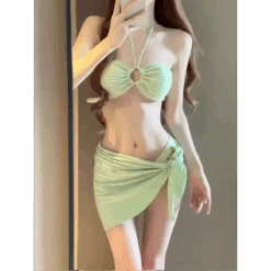 Step aside basic bikinisβthis minty-fresh moment is stealing the spotlight! The Mint Ribbed Halter Bikini Set β Ring Tie 3-Piece Swimsuit with Skirt is your ultimate glow-up for pool days, beach hangs, and pastel-drenched vacations. With a ribbed texture, flirty ring-tie detail, and a matching skirt, itβs giving kawaii confidence with a splash of Harajuku sass.