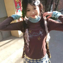 The Ocean Print Layered Tee – Y2K Vintage Slim Fit Long Sleeve Top is the definition of low-key iconic. From beach boardwalk strolls to rooftop hangouts, it’s your go-to for effortlessly cool, aesthetic-approved outfits. Don’t miss your chance to channel main character energy with this dreamy piece—ask us if you need help picking your size or styling it your way!