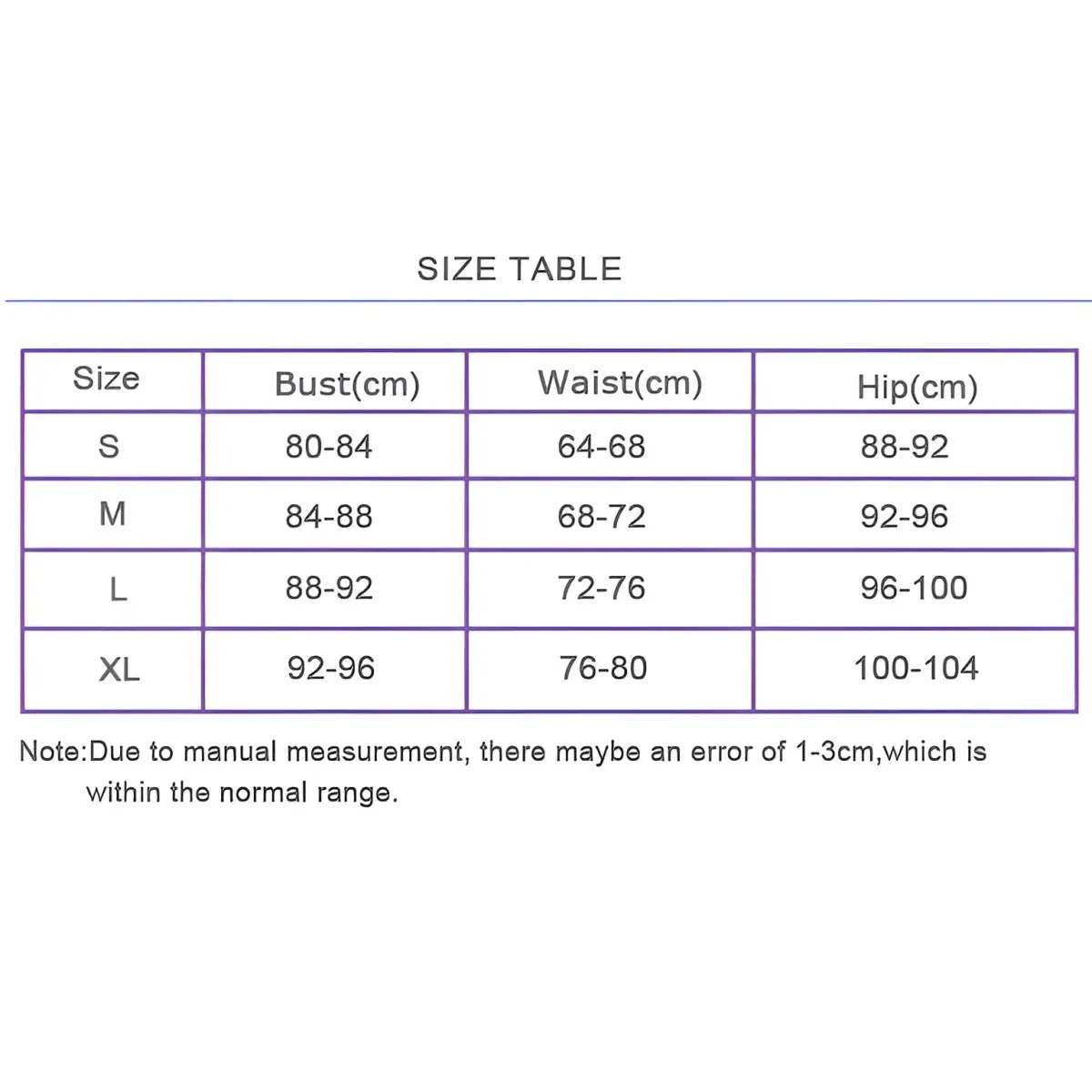 | Size | Bust (in) | Waist (in) | Hips (in) |