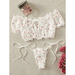 🛍️ Don’t miss out on this kawaii lingerie set that blends comfort, cuteness, and a touch of sexy. Add the Off-Shoulder Kawaii Lingerie Set to your collection and feel fabulous from the inside out. Shop now to embrace your playful side with this charming strawberry print bra and ruffle panty set!