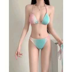 💖 Why You’ll Love the Pastel Gradient Halter Bikini Set – 3PC Korean Swimsuit with Mesh Skirt