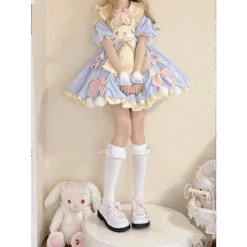 This pastel dream dress brings together soft pink hues, adorable baby blue bows, and a bunny apron that’ll make your heart skip a beat. Whether you’re headed to a Lolita meetup, a themed photoshoot, or just want to live your cutest life, this dress is a must-have centerpiece.