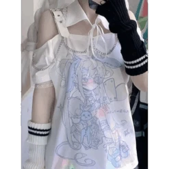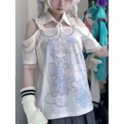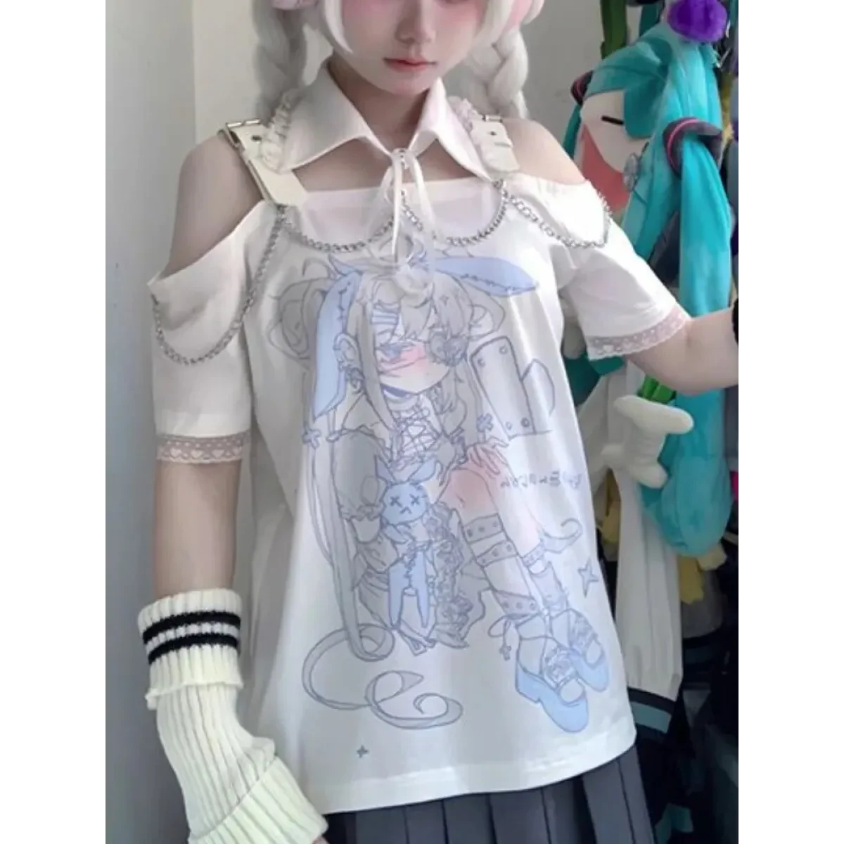 Elevate your style with the Pastel Menhera Off The Shoulder Tee from Kosahiki! This ACGN-inspired tee is a true fashion statement. Crafted with care in Mainland China, this tee is perfect for the summer season, providing comfort and style. Its regular length and unique chain decoration make it a standout piece in your wardrobe. With slight stretch and a loose fit, it’s not just a tee; it’s an expression of your style.