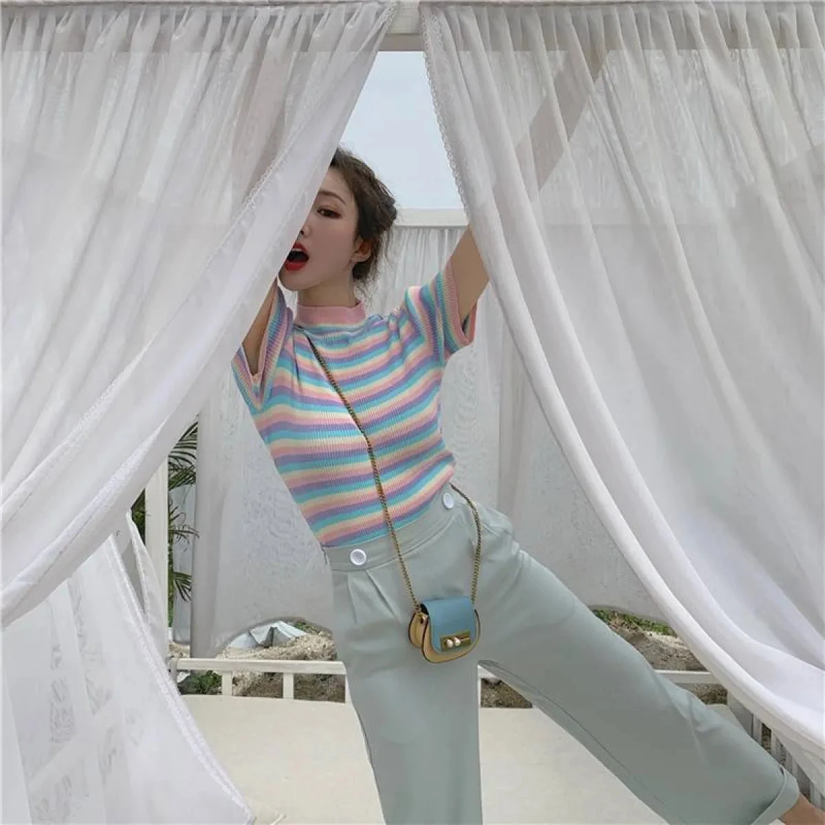 You don’t need to worry about the quality of our Pastel Striped Crop Top because we make all our products according to the manufacturing standards.